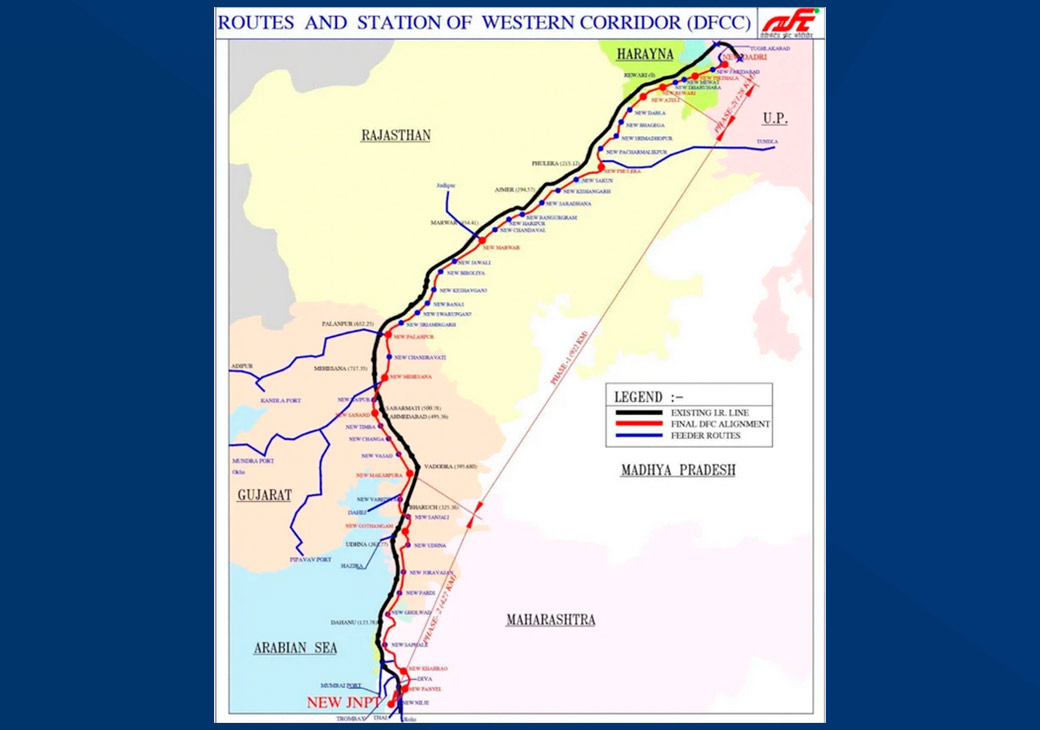 Западный выделенный грузовой коридор (WDFC) протяжённостью 1504 км представляет собой двухпутную электрифицированную линию, которая проходит через территорию пяти штатов. В декабре 2025 года WDFC, соединяющий порт Джавахарлала Неру (JNPT) в штате Махараштра с Дадри (штат Уттар-Прадеш), должен быть полностью введён в эксплуатацию.