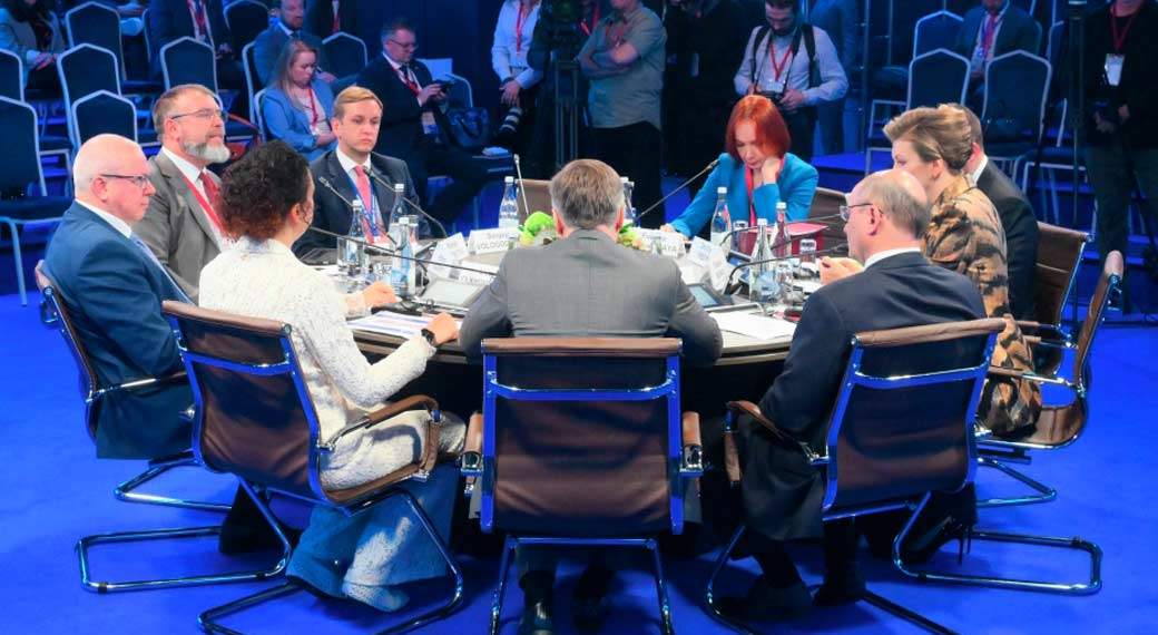 «Пробки, все всё понимают, мы работаем», — прокомментировала задержку модератор сессии.