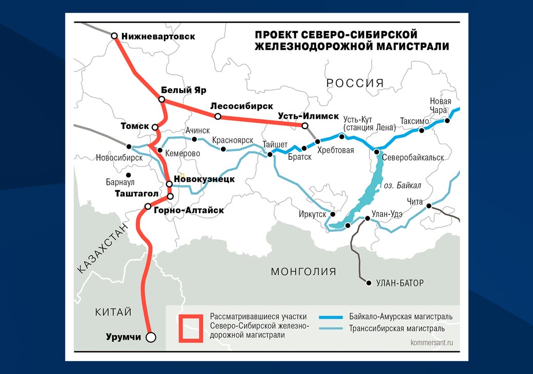 Севсиб должен был взять на себя часть нагрузки с переполненных Транссиба и БАМа, а также открыть новый экспортный путь в Китай. Но Восточный полигон расширили и расширяют так, что дефицита пропускных возможностей нет уже сейчас.