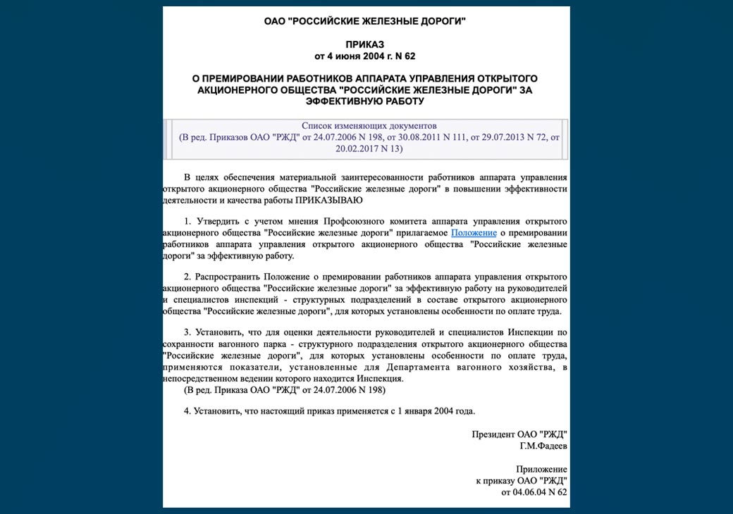 Ранее её начисляли регулярно, но в этот раз что-то пошло не так. В категорию лишенцев попали руководители всех уровней всех железных дорог, филиалов, региональных дирекций и линейных предприятий. Сотрудники ж/д монополии пожаловались нам: о том, что выплат не будет, узнали буквально накануне начисления премии.