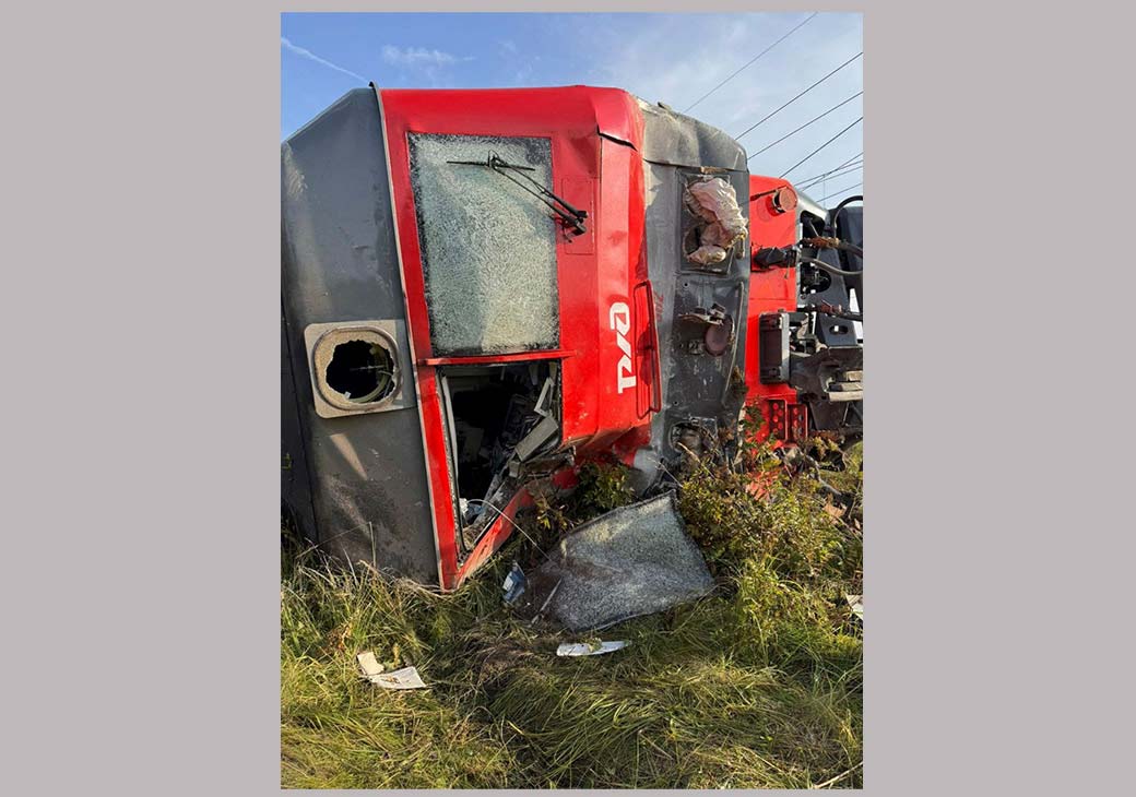 Сама «Ласточка» тем временем уже выехала на Витебский ход. Машинист-инструктор по автотормозам поехал за ней следом. Далее, как мы сообщали в нашем ТГ-канале, он развивал скорость до 163 км/ч (при установленной 80–100–120), и при следовании по ст. Семрино в кривой со скоростью 153 км/ч при установленной 80 произошло опрокидывание тепловоза. Центробежная сила. Наука.