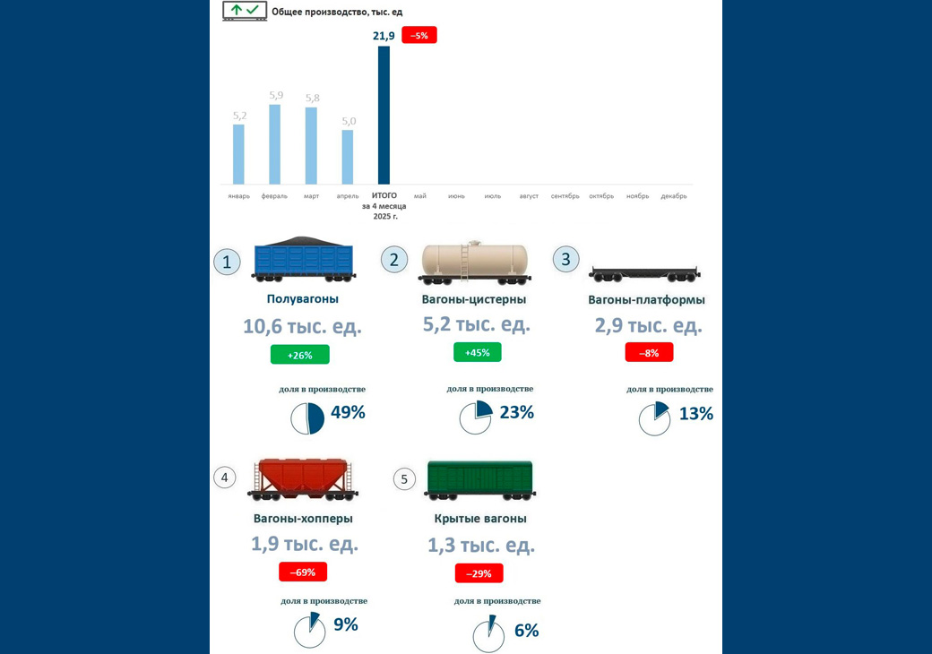 Согласно ежемесячному мониторингу ИПЕМ основных показателей и тенденций в железнодорожной отрасли ставки предоставления полувагонов под экспортные перевозки угля увеличились в январе 2025 по сравнению с декабрем 2024 на 14%, в рамках ежегодного роста тарифов РЖД с 1 декабря 2024. По отношению к пиковым значениям января 2025 года в мае стоимость предоставления полувагонов снизилась на 25–32%, включая снижение в мае относительно апреля 2025 г. на 5%, рассказал Vgudok заместитель генерального директора ИПЕМ Владимир Савчук.