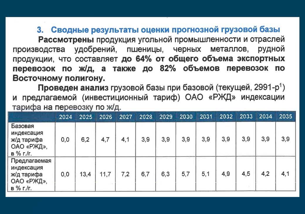 Выдержка из подготовленного Минэкономразвития «Анализа чувствительности прогнозных объёмов экспортных перевозок к цене и тарифам на грузовые перевозки на примере Восточного полигона».